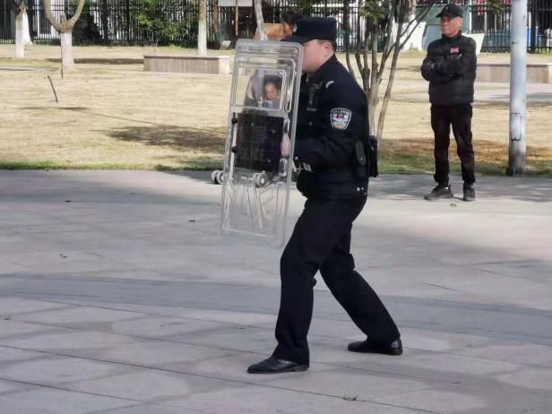 公安民警对防暴盾牌使用方法及技巧进行讲解教学,强调防暴人员在遇突发事件首先注意自身言行举止,在面对暴力攻击情况下提高自我防护意识,及时做好自我防护准备,并且规范使用防暴盾牌。