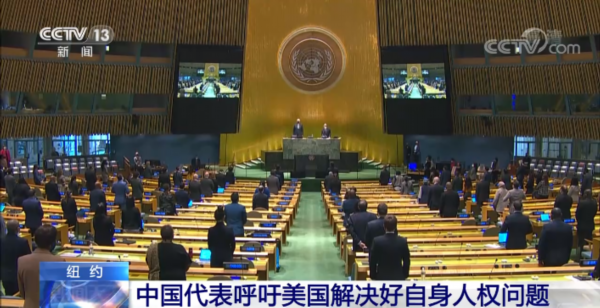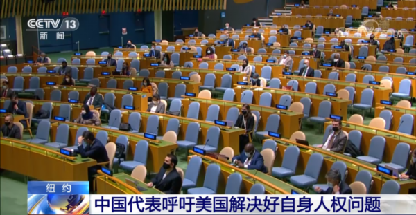 中国常驻联合国副代表戴兵在大会发言中指出,在美国,数千万的非洲人后裔仍然遭受着各种歧视和不公,自由和平等对他们只是空洞的法律条文。此外,针对亚裔人群的暴力事件也大幅增加。希望美方切实采取行动,着力解决本国的人权问题。