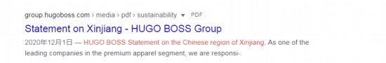此外,环球网记者检索发现,Hugo Boss还曾于2020年12月发布一则直接点名新疆的声明。