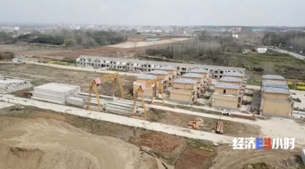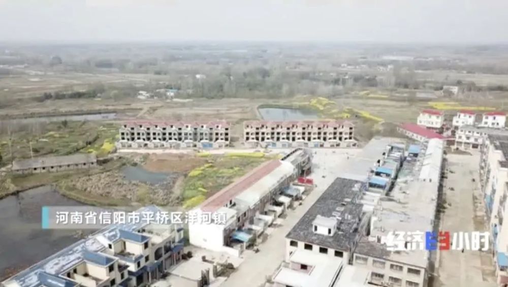 3月中旬,记者赶往了河南信阳市洋河镇,在洋河镇中心小学以西,白果树文化广场北侧,两排黄墙红顶的联排别墅已经基本完成了施工。