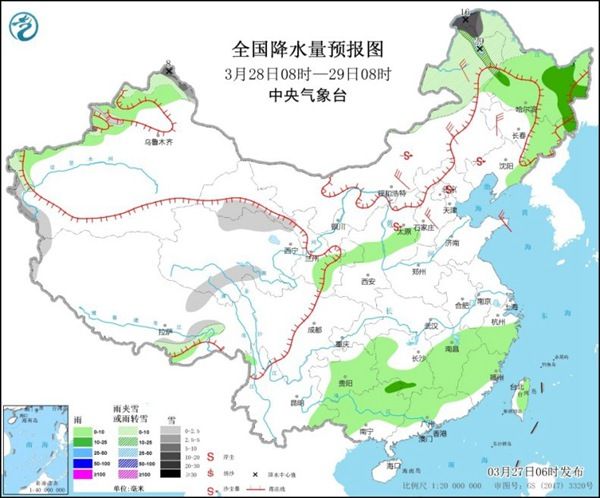 明天内蒙古东部、东北一带雨雪将再度发展增多,局地有强降雪,公众周末出行注意防范雨雪的不利影响。预计,内蒙古东北部、黑龙江西北部、新疆北疆北部和南疆西部山区、西藏东南部、青海北部和南部、甘肃河西等地部分地区有小到中雪或雨夹雪,其中,内蒙古东北部、黑龙江西北部、新疆北疆北部等地部分地区有大到暴雪(10~16毫米)。东北地区大部、西北地区东部、西南地区东南部、江南大部、华南大部等地部分地区有小到中雨。