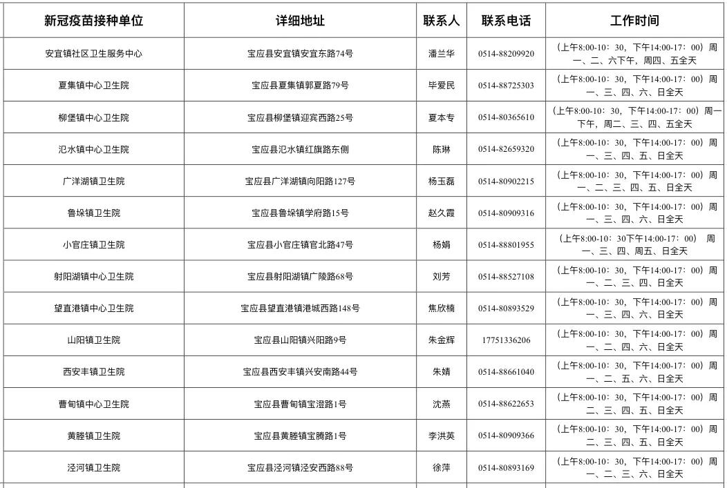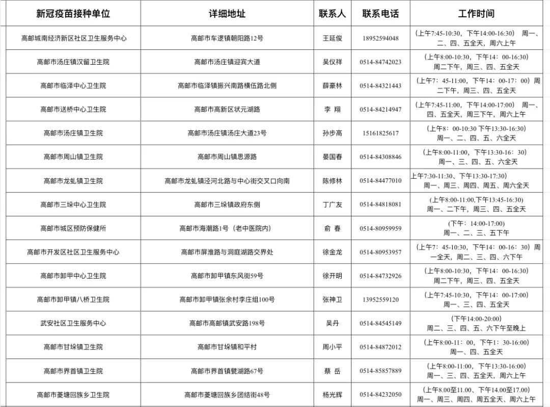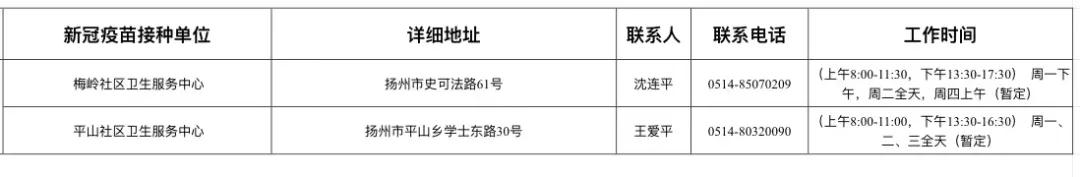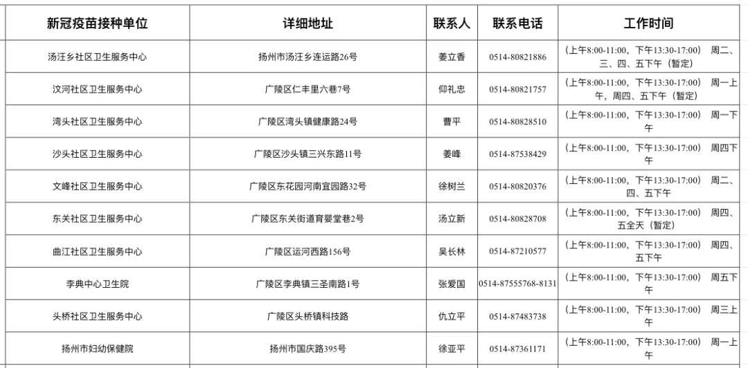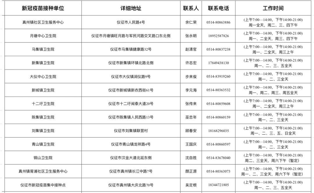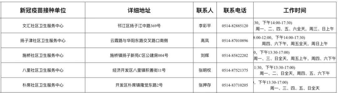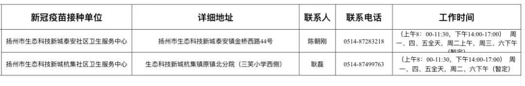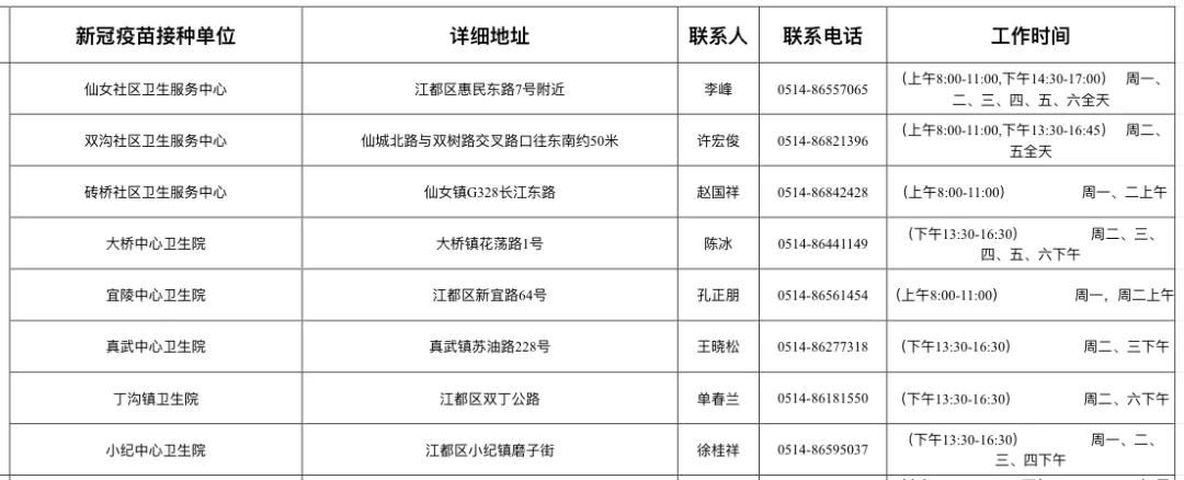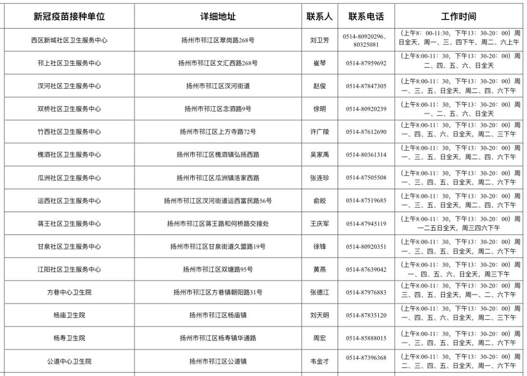 扬州市新冠病毒疫苗接种点