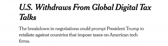 △华尔街日报:美国退出全球数字税谈判