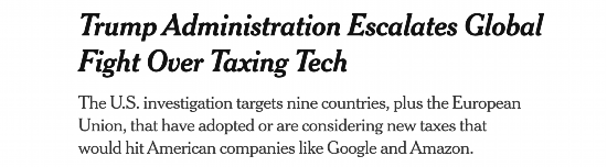 美国或对征收数字税的国家加征惩罚性关税的消息,其实并不令人感到意外。