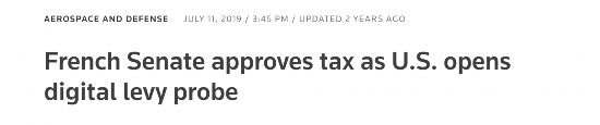 △路透社:法国参议院批准征税数字税 美国对此启动调查