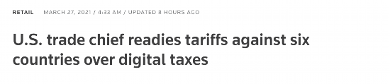 △路透社:美国贸易代表表示准备就数字税对6个国家征收关税