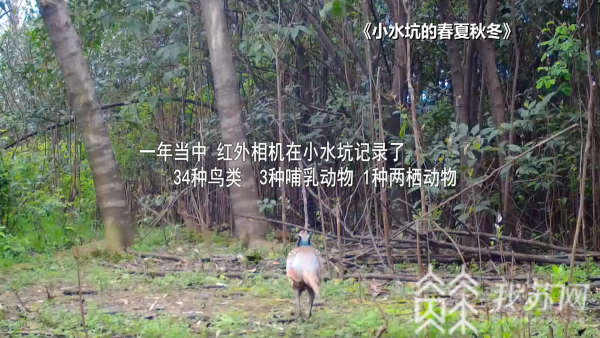 去年春天,南京女孩邰明姝在家附近发现一处小水坑,布设了两台红外相机,历时将近一年,历经春夏秋冬记录下了34种鸟类、3种哺乳动物、1种两栖动物,展现了一个生动的野生动物世界。