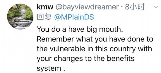 “记住你对英国的弱势群体做过什么,你从他们那里剥夺了有效的福利系统。”