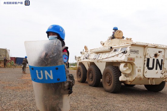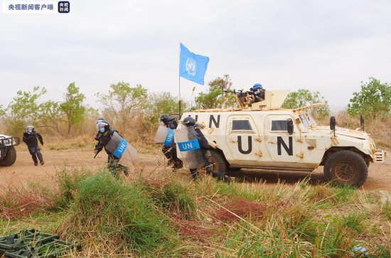 当地时间3月26日,中国第七批赴南苏丹(朱巴)维和步兵营通过联合国驻南苏丹特派团朱巴战区战备能力评估。