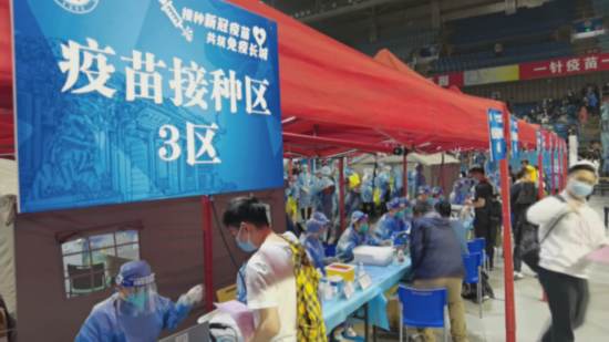 记者在北京大学邱德拔体育馆看到,接种工作井然有序,北大师生们正分时段、分批次进行疫苗接种。现场设置了测温区、知情同意书签订及健康问询区、信息登记区、疫苗接种区、留置观察及应急处置区、物资储存冷链区6个区域。