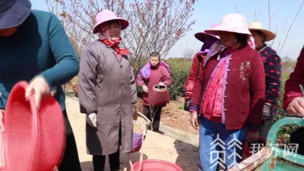 清明将至,在句容市天王镇某果园,茶农们抢抓晴好天气,采摘茶叶,供应市场。