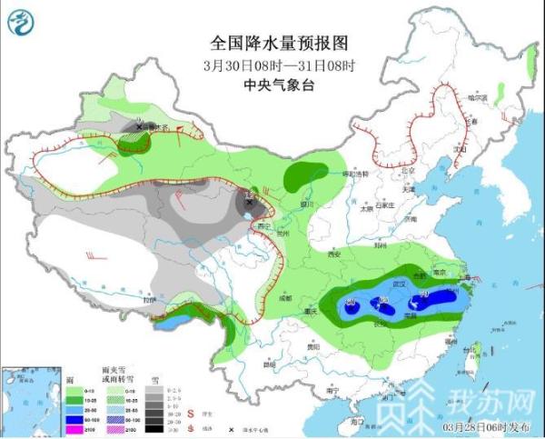 春季的天气非常多变。 暖湿气流北抬,29日也就是新一周的周一,苏南地区可能迎来雷阵雨,其他地区多云,更认真地降水还在后面。江苏省气象台首席预报员蒋义芳说:“从31日开始到2日,以及到4月3日前期这一段时间,全省降水还是比较多的,特别是在31日到1日,全省降水非常明显,部分地区可能达到中雨,局部大雨。”