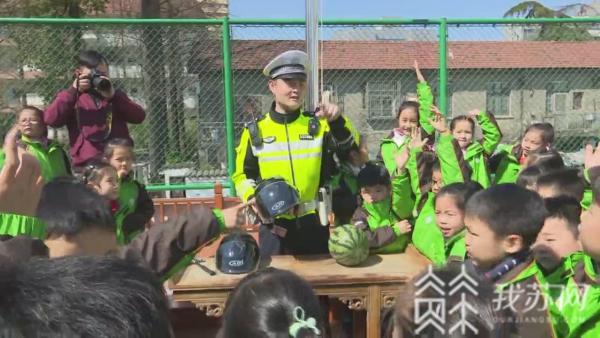 活动中,交警通过讲解交通安全法规、交通标志互动问答,启迪孩子们的守法意识和文明意识;用西瓜模拟安全头盔对人头部的保护,来强调驾驶、乘坐电动自行车佩戴安全头盔的重要性。