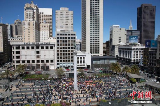 当地时间3月27日,美国加州旧金山大批民众走上街头,抗议针对亚裔的歧视和暴力行为。当日,美国多地爆发反对歧视亚裔的游行和集会。中新社记者 刘关关 摄