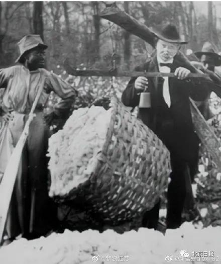 细节四:被鞭子抽打的黑奴还有网友注意到,画中有戴着白色尖帽的人,用鞭子抽打黑奴的情景。这是当年黑奴们真实的血泪遭遇。