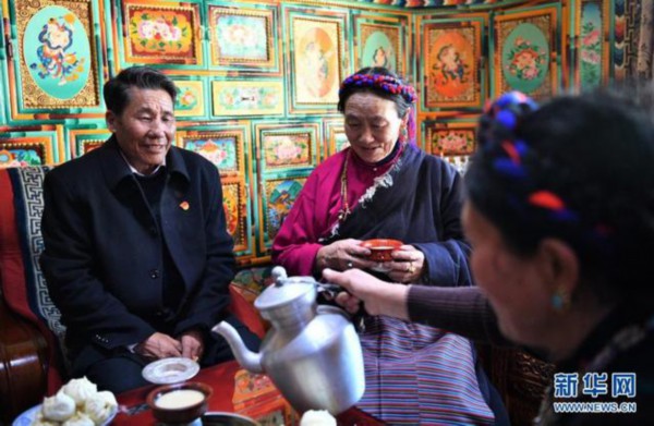 洛松朗加和他的家人(2月19日摄)。新华社记者 孙非 摄