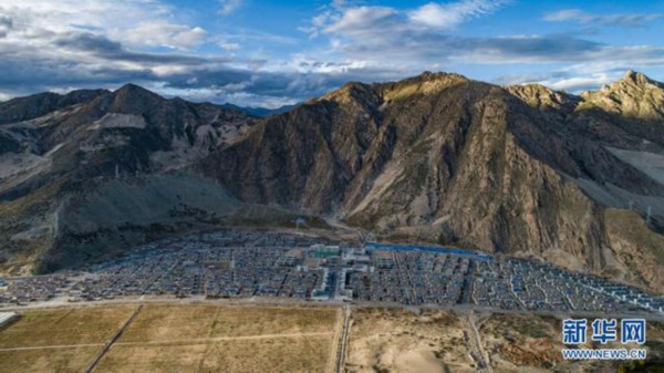 位于山南市贡嘎县的森布日搬迁安置点(2020年9月24日摄,无人机照片)。新华社记者 孙非 摄