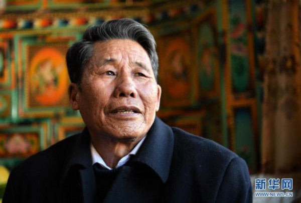 71岁的昌都市左贡县旺达镇列达村老人洛松朗加(2月19日摄)。新华社记者 孙非 摄