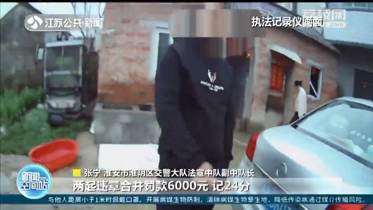 淮安市淮阴区交警大队法宣中队副中队长张宁介绍,驾驶人翟某仅持有D证,驾驶小型汽车就属于证驾不符,驾驶的报废车也是套用他人牌照,这些违章合并罚款6000元,记24分。