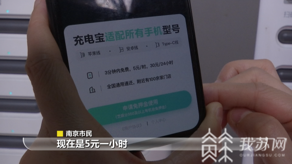 在南京玄武湖,记者碰到了正在租用充电宝的杨女士,她扫码后发现页面弹出的价格是每小时5块钱。
