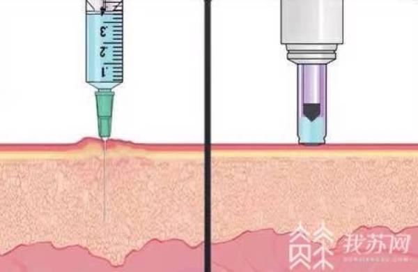 无针注射运用压力射流原理即在恒定压力下,药液通过0.14mm极微细孔迅速穿透表皮和真皮,药液透皮后,能迅速衰减,注射深度仅为4-6mm,减少皮下神经刺激,药液在皮下组织,呈喷雾状弥散吸收,吸收更迅速,注射过程仅0.3s。进入皮肤的只有药液,对皮下组织几乎没有损伤,可以有效降低针头引发的风险,并且无针注射是《中国老年糖尿病诊疗指南(2021年版)》明确推荐的糖尿病治疗注射装置。