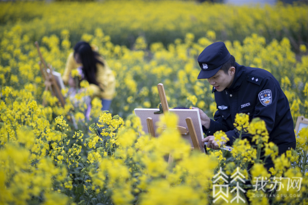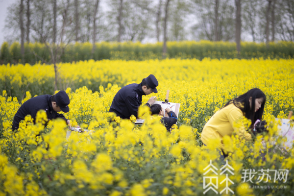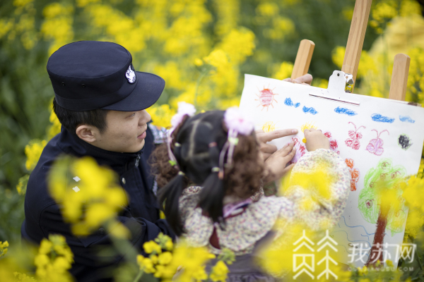在黄沙港街道的田野里,到处都是盛开烂漫的油菜花,春风拂过,金浪翻滚,花香四溢。在花丛中,民警、老师和孩子们一起嗅着花香、一起观察油菜花,他们手把手地教孩子如何勾勒花瓣、如何画昆虫、如何给油菜花着色。现场,孩子们尽管手握画笔的姿势还有些稚嫩,但都执着认真地画着菜花、描绘着春天。“孩子们非常可爱!以后,我们有机会要多走访康复中心,与孩子们互动,一起走进大自然,感受自然的美好,为帮助他们融入社会作出我们的努力。”一位民警表示。