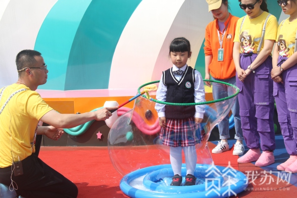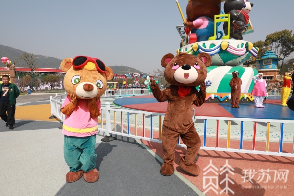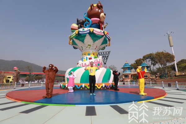 新建“阿熊乐园”的音符花园由阿熊IP老三“熊不烦”负责,它热爱音乐,心志坚定,喜欢在音乐世界中畅游。动物园工作人员告诉记者,该区域主要游乐设施有“甜蜜旋律”、“植物迷宫”、“音符广场”。无论老少,每一位游客都可以在这里跟随着音乐一同欢唱。音符广场是“阿熊乐园”的地标性建筑,配备有多种触发程序的旱喷、巨型钢琴键、互动弹幕大屏等符合全年龄段的互动娱乐设施,给游客带来愉悦的沉浸式体验。活动期间,四只可爱的阿熊与小丑、小妖怪等一起为来园游客准备了一场“春之旋律”。