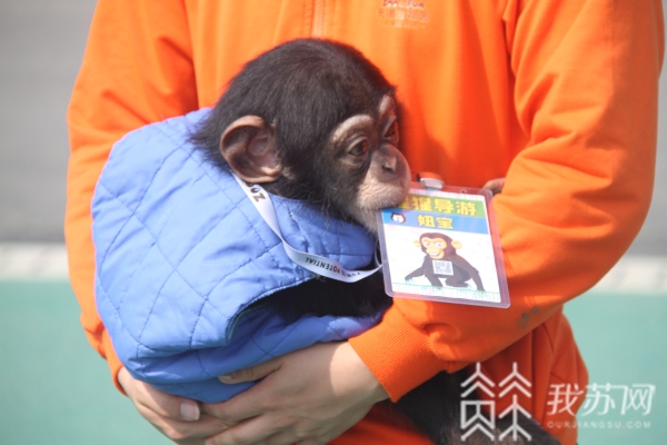黑猩猩“妞宝”已经22个月了,活动量明显增加。近期天气回暖,“猩爸”尤师傅准备带着猩宝一起踏青寻春逛动物园,而我们的猩宝当起了一名明“猩”导游。这个春天,是猩宝第一次享受春风和暖意,第一次与来园游客见面。据尤师傅介绍“妞宝非常好动,目前健康状况良好,体重已经达7.2公斤。现在还是以奶粉为主,每天要喝2次奶,每次200毫升。将近2岁的猩宝已经能吃些水果、蔬菜和发糕。安静的时候喜欢抱着娃娃,但更多时候还是处于顽皮的状态,不是喜欢吊着床玩耍,就是在屋里到处乱跑,抱着我一起玩耍。”