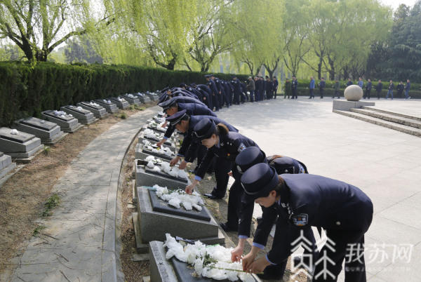 3月29日,在清明节即将到来之际,江苏常州出入境边防检查站组织民警深入烈士陵园,向革命烈士纪念碑敬献了鲜花。