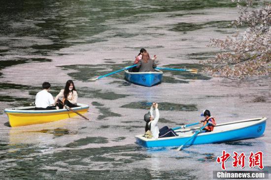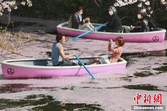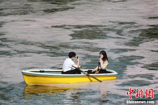 日本民众舟游“樱花河” 落英缤纷美不胜收