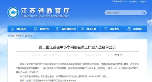 入选第二批江苏省中小学网络名师工作室