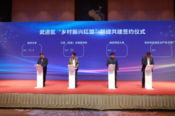 活动现场,扬州大学、南京师范大学分别与江苏(武进)水稻研究所、区水产技术推广站签署了党建共建协议和战略合作协议;区农业农村局党组分别与区生态环境局党组、区文体广旅党组、雪堰镇党委签约;区农业农村局机关党委、区畜牧兽医中心支部分别与人保公司武进支公司支部、江苏立华牧业第二支部签约。