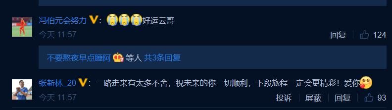 周云宣布退役后,昔日并肩作战的队友纷纷送上祝福。