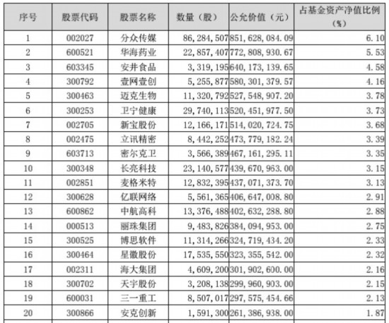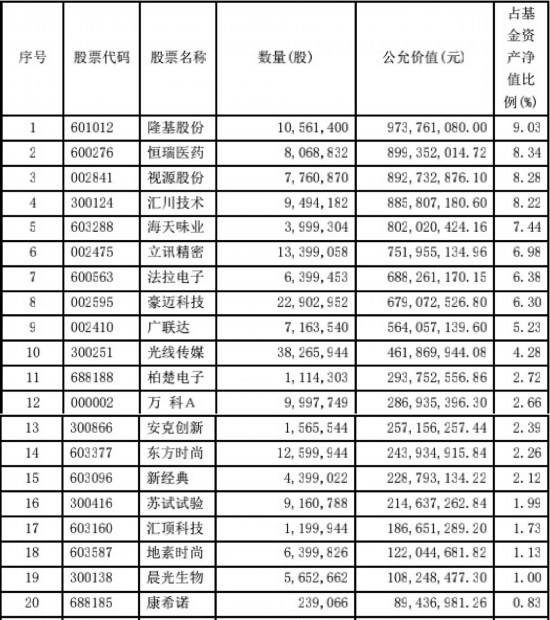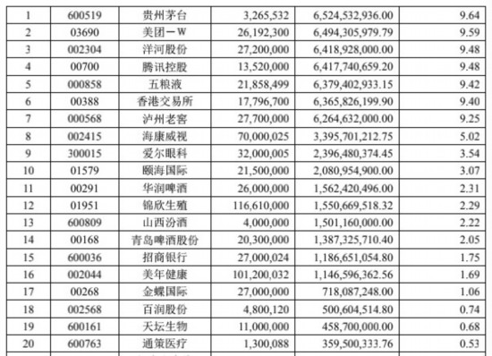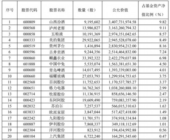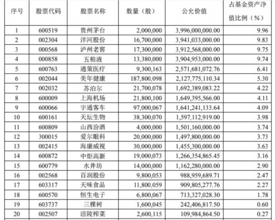 我们同样来看看前20大持仓股的情况: