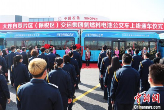 图为大连首批氢燃料电池公交车投入运营。姜迎昕摄