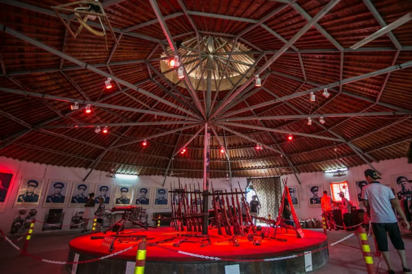 礼堂内设有十大元帅和十大将军的画像和简介,为大家展示了三八大盖、歪把子、轻机枪等旧式军事器材。礼堂外则有仿九二式重机枪和海防炮体验场,让大家充分了解当时的作战背景及艰苦的作战条件。