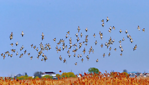 九河汇聚,杨柳垂丝,春季的江苏建湖九龙口国家湿地公园迎来了赏鸟季,“鸟中大熊猫”震旦鸦雀现身、国家一级保护动物东方白鹳“回家”,北归的候鸟们翩然而至,吸引了部分市民和摄影爱好者前来观鸟。