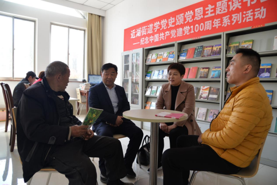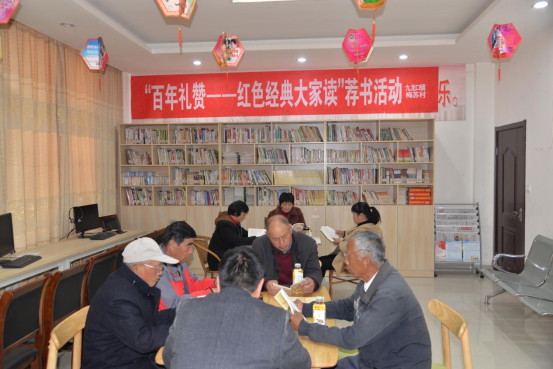 盐城市建湖县将e学党史与全民阅读相结合,在15个农家书屋打造“双湖读吧有声图书馆”,群众拿出手机扫一扫二维码,就可以阅读丰富的图书;利用农家书屋定期开展“学党史 颂党恩”“百年礼赞——红色经典大家读”等主题活动,党员干部、群众围坐一起,品读红色经典、重温红色记忆。线上线下相结合的新形式,让农家书屋成为群众学习了解党的百年奋斗历程的精神阵地。