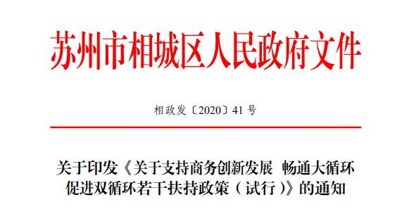 此外,相城还发布了《相城区聚焦企业关切进一步优化营商环境实施方案》、《关于支持商务创新发展 畅通大循环促进双循环若干扶持政策(试行)》等扶持政策,推动营商环境政策红利升级。