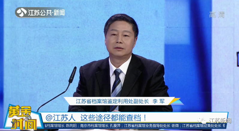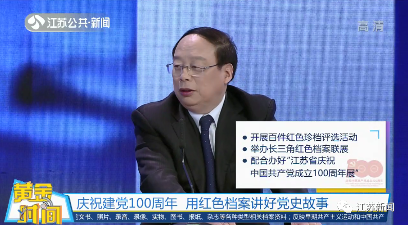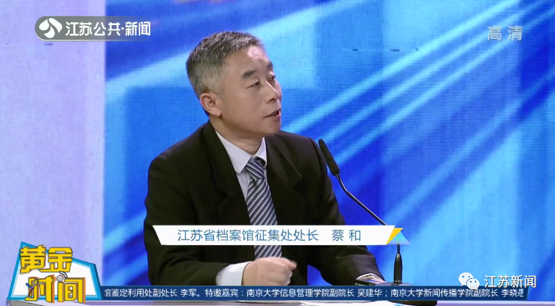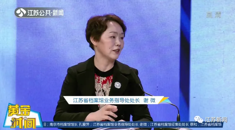 围绕“让档案活起来 亮起来”,《黄金时间》邀请到:江苏省档案馆馆长陈向阳、南京市档案馆馆长孔爱萍、江苏省档案馆业务指导处处长谢微、江苏省档案馆征集处处长蔡和、江苏省档案馆鉴定利用处副处长李军以及特约评论员:吴建华、李晓愚共同进行解读。