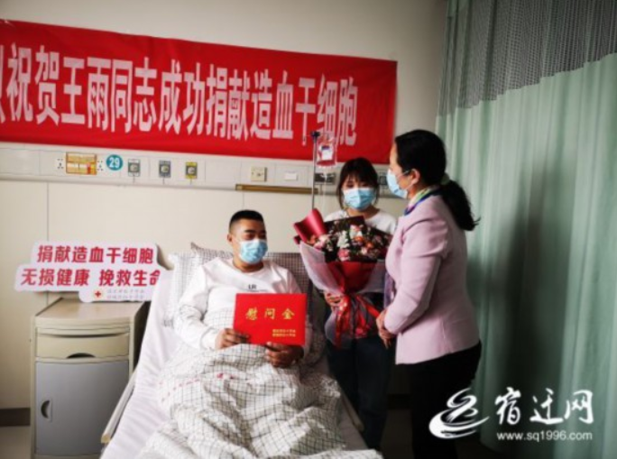“这样的机会非常难得,可以说是一种缘分,因为造血干细胞配型成功的概率大约只有十万分之一。”前来看望王雨的宿迁市红十字会副会长王昱强说。