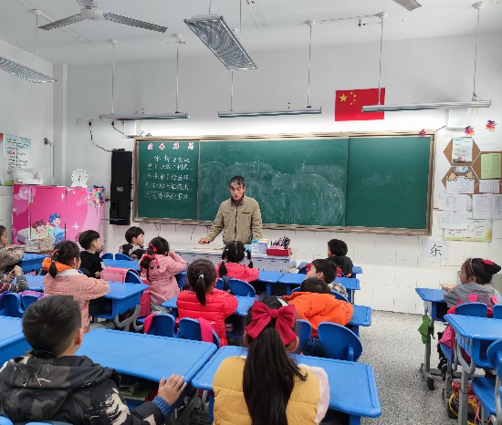 在六(1)班教室里,龙虎塘实验小学退休老校长殷明欣给学生们声情并茂地讲述了老党员严卫平的故事。严卫平在一次战斗中,被子弹打穿大腿后仍然不下火线。学生金荣庆听后十分感动:“以前也读过英雄故事,可总觉得有种距离感,今天听了身边的党员爷爷亲口讲出这些故事,我这才知道为什么国旗是红的,那都是战士的鲜血染红的!”殷明欣勉励学生们:“学习是一个要付出努力的过程,就像我们的革命战士,正是他们的努力,才给我们创造了今天的美好生活,希望同学们也能不负自己,不负青春,努力学习!”