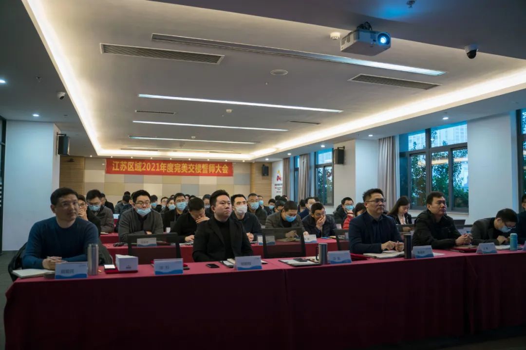 完美交楼,追求卓越。3月1日上午,江苏区域2021年度完美交楼誓师大会在碧桂园江苏区域华东中心大楼2楼会议室召开,江苏区域总裁蒋遨宇、大运营组长、区域职能负责人、片区总、2021年交楼项目总、营销片区负责人、客关片区负责人、物业片区负责人等现场出席会议。