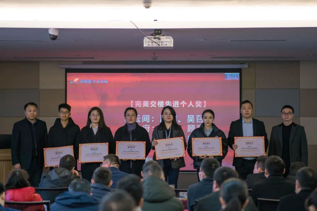 会议接着进入颁奖及表彰仪式环节。碧桂园·泊云间项目、碧桂园·樾府(丹阳)项目、碧桂园·凤熹台(丹阳)项目获得完美交楼先进团队奖;泊云间项目周辉、吴召煊,碧桂园·樾府(丹阳)项目沈露、顾喜能,碧桂园·凤熹台(丹阳)项目龚旭、韩萍获得完美交楼先进个人奖;