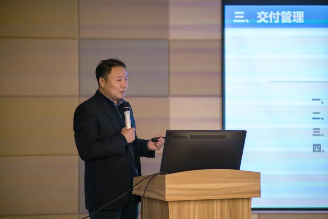 江苏区域客关条线负责人吕洁作《完美交楼,口碑相传》主题汇报,就2021年错峰交付,人力物力优化安排进行前置铺排宣贯;同时她强调交付是一场跨公司、跨甲乙方、跨部门、跨专业、跨职级的“全员客户见面会”,就“交付前、交付中、交付后”需要注意的风险管控、承接查验、品质提升等多个问题进行达成措施分享;