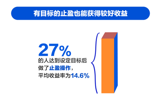市场震荡之下,追涨杀跌、频繁交易的操作也更加普遍。面对行情的冲击,支付宝理智库的一季度投资者信建议,投资人可以设立自己的盈利目标,当目标实现时及时止盈,落袋为安。报告显示,偏股型基金投资者中,有近3成的人有止盈操作,平均收益率为14.6%。