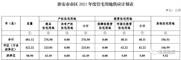 淮安市自然资源和规划局面向社会公布了淮安市2021年度住宅用地供应计划文本以及市区2021年度国有建设用地供应计划