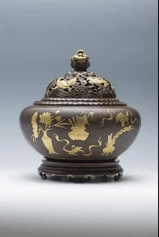 香炉的历史在我国由来已久,文人雅士经常用香炉营造高雅意境。铜香炉是铜器一个重要类别,材料以紫铜、白铜、黄铜制作的各种香熏炉,有的炉身和炉盖上镂刻精致的纹饰吉祥图案或错金错银,既有收藏观赏价值又有实用性。