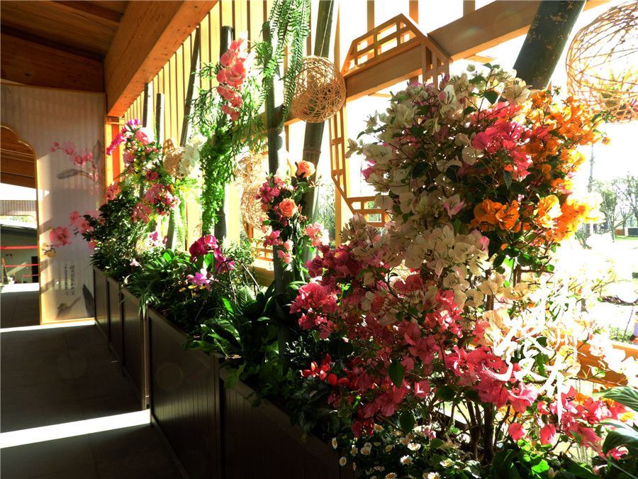 大厅东侧正对连廊的区域,则是鲜花展示区。