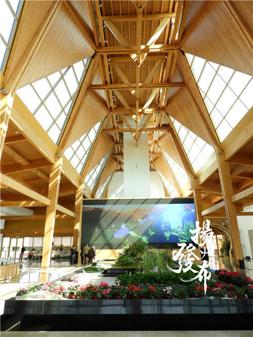 从2021年扬州世园会西园南大门进入,迎面便可以看到一幢造型别致的现代木结构建筑,这就是中国馆。